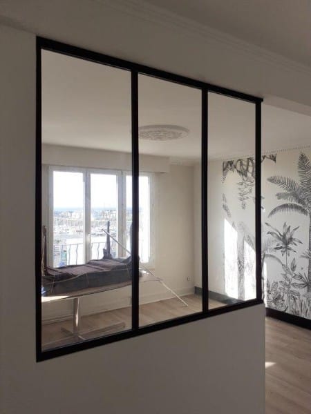 Encore plus de cachet à ce joli appartement grâce à la pose d’une verrière en aluminium noir mat en vitrage clair. Un élément idéal pour séparer un couloir d’une pièce de vie tout en gardant un maximum de luminosité !