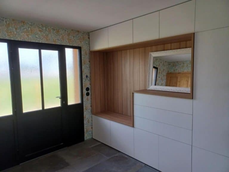 Cette réalisation d’aménagement de rangements sur Agon-Coutainville est un exemple parfait de la façon dont il est possible d’optimiser une petite entrée.
